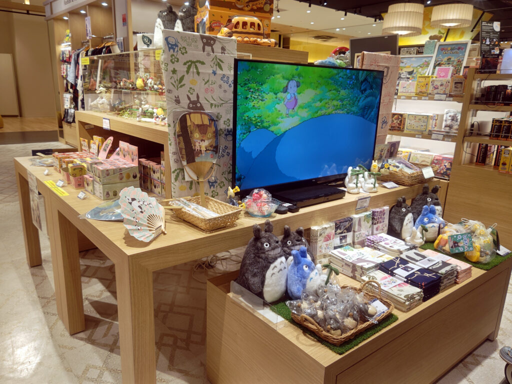 店内にはジブリグッズやポケモン、マリオなど人気キャラクター商品がずらりと並び、特にジブリコーナーは圧巻の品ぞろえでした。